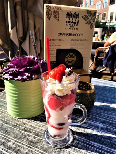Wat is der moaier as op de tweede frijdach in òktober je del te geven op ut terras fan Onder de Linden, midden in de stad. Ideale wearsomstandechheden, inderdaad Carpe Diem!