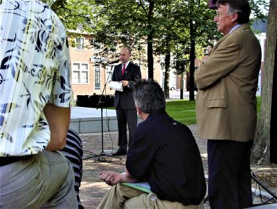 En wat un soad públyk ston der op ut sonovergoaten Oud Kerkhòf. Jeuminikkus ut Snekers en de poëzy leeft dus écht. Onder de klanken fan draaiòrgel 'De Peardekòp' stonnen de mênsen foarou an de opening gesellech met mekaar te praten. Uteraard un heel soad frynden en bekenden.