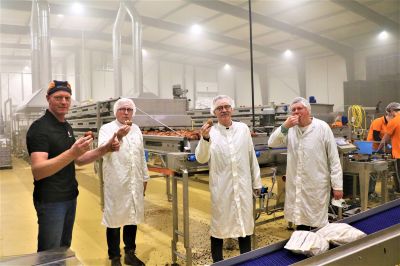 Nadat Stephan en Kim ons te woord hebben gestaan, laten ze ons de nieuwe werkplek zien. De geur van olliebollen en appelbeignets zorgen ervoor dat het water ons in de mond loopt. Het is een indrukwekkend gezicht de productielijnen volop in berdrijf te zien. Samen met zijn broer Erwin Venema (“Hij mag, nee hij moet met ere genoemd worden!”) , die opleiding Pedagogische Technische Hogeschool volgde, ontwierp Stephan de oliebollenmachines. Even later loopt ook vader Venema met ons door de productieruimte. Zichtbaar trots. En terecht!