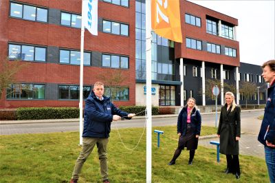 Kort daarvoor hadden de werknemers van het Sneker bedrijf al een handtekening op de heipaal geplaatst. De feestelijke plechtigheid was volledig coronaproof: taartje eten en proosten op afstand. Sneker bedrijf