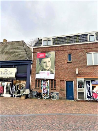 Ook in Sneek, op de hoek Jousterkade/Oosterdijk hangt zo’n portret. Het is een foto van Ids Boot. De tentoonstelling ‘Wy koenen der noch wol ien by ha’, toont tegelijk de gastvrijheid van Friese onderduikfamilies, die ondanks alle gevaren de kinderen opnamen in hun midden.