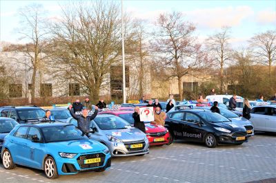 SNEEK- Een dertigtal rijschoolhouders uit Sneek e.o. heeft vanavond op het parkeerterrein aan de Alexanderstraat in Sneek een ludieke actie gevoerd tegen plannen van het CBR om leerlingen beter voorbereid naar het rijexamen te sturen. Dat is volgens het CBR nodig om de achterstand van 600.000 examens in te lopen. De manier waarop het CBR dat probleem wil oplossen, hebben de Sneker rijschoolhouders hun vragen bij. Vandaar vanavond de bestickeringsactie met een groot vraagteken om aandacht voor het probleem te vragen. Bij rijschoolhouder Marten Hoekstra en z’n collega’s vallen de plannen van het CBR dus niet in goede aarde. Statement “Wij zijn vanavond bij elkaar om een statement tegen het CBR te maken. Het CBR wil de slagingspercentages omhoog hebben, dat willen ze trouwens al jaren. Dat vinden wij als rijschoolhouders uiteraard ook een prima streven. Alleen de maatregelen die het CBR daarbij wil nemen om het percentage omhoog te krijgen, daar hebben wij grote vraagtekens bij. Vandaar ook de sticker met het vraagteken. Het CBR wil de tussentijdse toets eruit halen om meer capaciteit te creëren. Het faalangstexamen moet verdwijnen en dan het kritische punt om de examenleeftijd naar 18 jaar te verhogen. Als je nagaat dat ons klantenbestand voor 60 tot 70 procent uit 17-jarigen bestaat, dan is het niet zo moeilijk om te begrijpen dat het CBR aan ons brood komt”, zegt Hoekstra. De Sneker rijschoolhouders zijn ook niet te spreken over de communicatie met het CBR. “Berichtgeving ontvangen wij met name via de media in plaats van het CBR zelf. Door de slechte bereikbaarheid van het CBR voelen veel collega’s zich vaak genoodzaakt hun ongenoegen te uiten richting examinatoren. Dat vinden wij een kwalijke zaak, omdat dit belemmert wat wij juist willen bewerkstellingen en dat is een betere samenwerking”, weet Hoekstra.