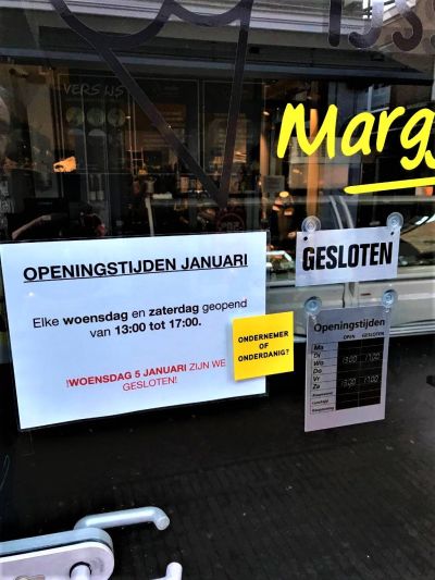 “Ik was gisteravond nog druk aan het klussen in mijn zaak toen ik een drietal jongens met capuchons en zonnebrillen op, langs zag komen. Ze plakten stickers bij mijn buren op de ramen. Toen ik vroeg wat de bedoeling was, lachten ze wat dommig. Ik vroeg wie ze waren, maar dat wilden ze niet zeggen. Het enige wat ik hoorde was mijn naam en toen verdwenen ze in het duister. Eerlijk? Ik was razend en het was maar goed dat mijn vrouw, die ook in de zaak was, mij tegenhield. Je doet je stinkende best om te overleven en dan flikken ze een dergelijk dom geintje wat absoluut geen grapje is. Dit doe je niet! Ga dan in discussie en met open vizier”, aldus de Sneker ondernemer die wij spraken.