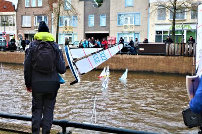 SNEEK- Even voor halfdrie vanmiddag klonk het eerste startschot voor de 3de Kroon Cup met de DF 65 radiografisch bestuurbare zeilboten. In drie aparte groepen van 15 deelnemers werd vervolgens de heat door de Sneker stadsgrachten gevaren.