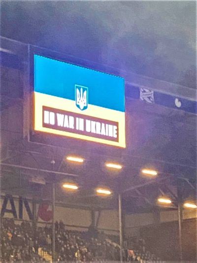 Mar tsja, wat seit ut allemaal at der spandoeken in ut stadion hange dy't oproepe om 'no war yn Ukraïne'! Dan is alles op ut feld ok mar bijsaak.