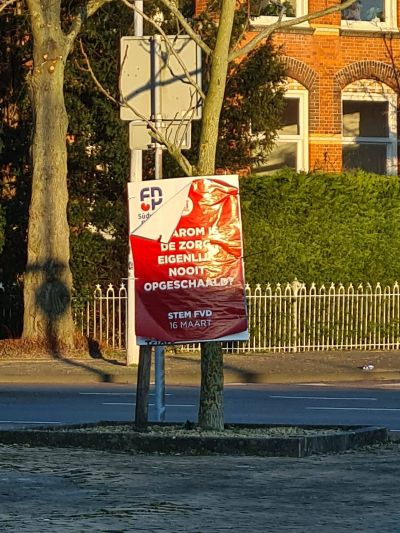 Heel dicht bij myn eigen hús, un afysje fan FvD over dat fan de FNP plakt. Wat foar ondemokratise hufters doën dat? Boycotte dat soadsje!