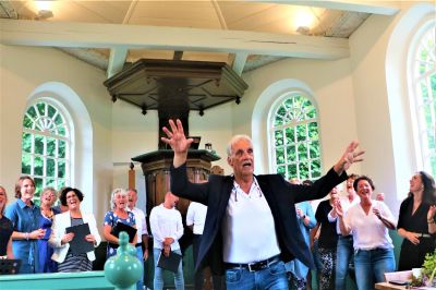 SANFIRDEN- Pop- en musicalkoor Drylts, bekend van de locatietheater voorstellingen IJlst 750 jaar, onder leiding van gepassioneerd dirigent Jan Blanksma gaf zondagmiddag een sprankelend optreden in het pittoreske dorpskerkje van Sandirden/Sânfurd. Het concert van Pop- en musicalkoor Drylts, met solozang van Welmoed Blanksma en pianist Walter Smink, bracht groot enthousiasme teweeg bij het publiek: Let the Sunshine yn Sânfurd!