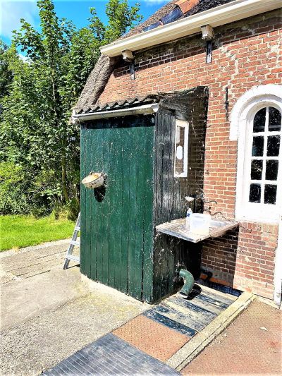 Bij dy buurman sagen we oans op ut hiem de ogen al út’e kòp. Alliennech un echt autentyk skythús en un wònderbaarleke moaie oud kipetrapke was al genoech om un sucht fan genot te slaken. Jeumenikkus wat moai!
