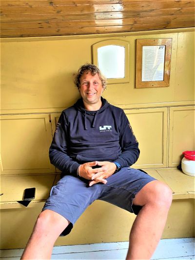 In ’e namiddach was ut gelukkech wat rusteger en hew ik nòch un moai interview doën kannen met Luuc Elzinga, de nieuwe skipper en eigenaar fan ut IFKS skûtsje ‘De Ut & Thús’. Dat gebeurde in ’e roef fan ut skûtsje dat in 1910 bij Brandsma boud wurdde.