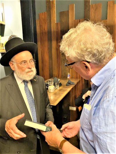 Ut boek ferdiënd un feul groater públyk tòt nou toe. Tjitte het ut boek 14 dagen leden kadoo geven an opperrabbijn Binyomin Jacobs, ik maakte un foto fan dat moment.