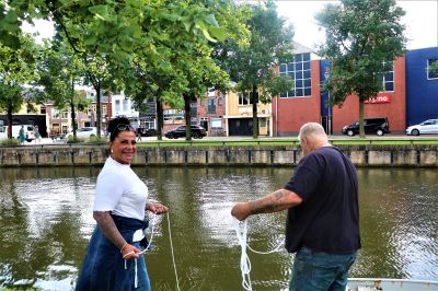 Dêrna bysòndere fotomissy met Robina K. Se hewwe ut groate bòrd bij har fan ‘e gevel jatten en dêrna in ut water an’e Prins Hendrikkade goaid. Waardeloas, dy ‘grap’ kost Robina un paar dúzend euro. Se probearden fanmòrren met un magneet de lokasy presys in beeld te krijen om ferfòlgens de gevelreklame naar boven te halen. Lukt nyt. Mar ut ferhaal krijt wel un ferfòlch. Dêrover later mear.