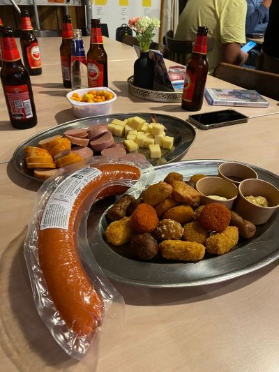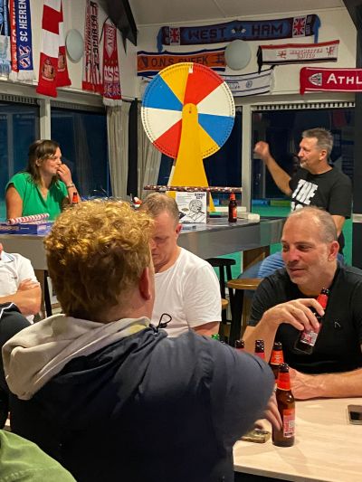 Fanmiddach (h)earlek interview had met bovenstaande pizzabakkers. Fanavend lekker foetballe: 7 teugen 7.
