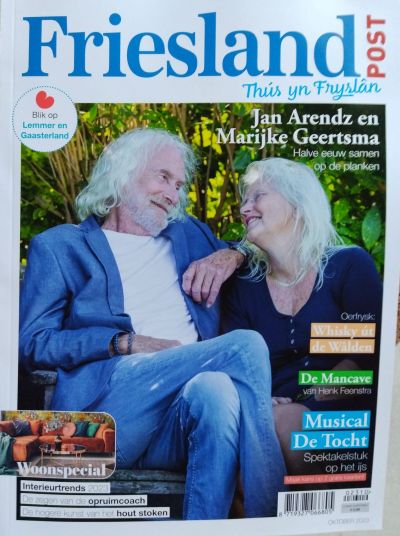 “Deze week verschijnt alweer de tiende editie van Friesland Post sinds ik er mocht aantreden als hoofdredacteur. Het maken van twaalf nummers per jaar, ook nog eens met de nodige bijlagen, vergt een goed ingewerkt team. Gelukkig is dat er. Je merkt dat je een instituut vertegenwoordigt, een cultuurdrager in een provincie waarin het al bijna een halve eeuw meedraait. Iedere maand opnieuw. Net zo lang als het warme stel op de cover van het oktobernummer, Frieslands beroemdste acteur duo en -echtpaar Jan Arendz en Marijke Geertsma. Vijftig jaar op de planken, samen. Ga er maar aan staan. Constanten hebben een hoge waarde in een maatschappij die zichzelf soms uit het oog verliest”, skriëft Herman.