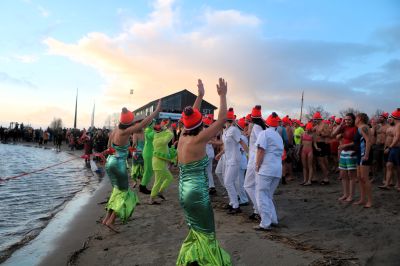 Nieuwjaarplonsers in Oudega en Heeg