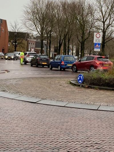 SNEEK- Allervriendelijkst blijven de verkeersregelaars van de gemeente Súdwest-Fryslân die automobilisten erop wijzen dat vandaag de ‘autoluwe binnenstad Sneek’ is ingegaan. Het leidt wel tot filevorming en soms gevaarlijke situaties op de rotonde bij de Vismarkt in Sneek.