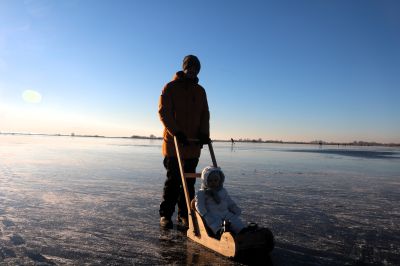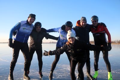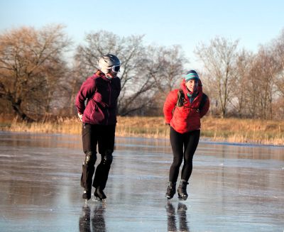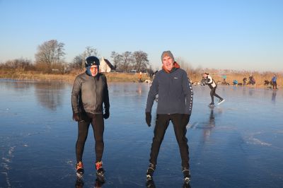 SNEEK- Volop schaatsplezier aan de Mardyk! Even na 09.00 uur waren de eerste schaatsliefhebbers al present op het ondergestroomde land aan de Mardyk. Daar bij ‘dé Sneekermeer’, zetten de schaatsers de eerste ‘streken’ onder ideale omstandigheden. Onder hen Jan Willem Doeksen en z’n dochter Fee, speciaal overgekomen uit Den Haag, om te schaatsen.