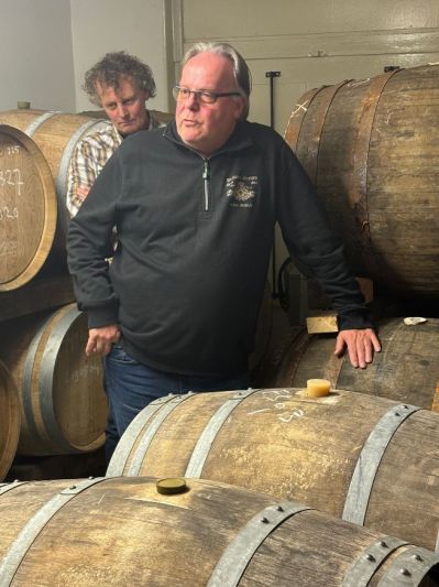 Na de lezing van Hans Koppen gingen de Sneekologen in spé naar de Weduwe Joustra om daar letterlijk aan de Beerenburg (‘met twee e’s!) te ruiken. En uiteraard hun kennis te vergroten over het unieke Sneker bedrijf.