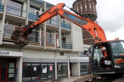 Wethouder Michel Rietman mocht onder leiding van Rodney van Duinen van TN Slopen & Saneren, de eerste balkons slopen: ‘Samen Sneek mooier maken’, aldus de wethouder. Rietman riep verder andere pandeigenaren in Sneek verpauperde panden aan te pakken. “Er gebeurt gelukkig al wat maar het kan een tandje meer”, weet de wethouder.
