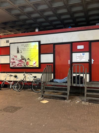 Ondertussen kom ik amper, sêch mar gewoan nyt, de deur út. Hew hier trouwens un bêst plak en piel eigenlek de hele dach om.