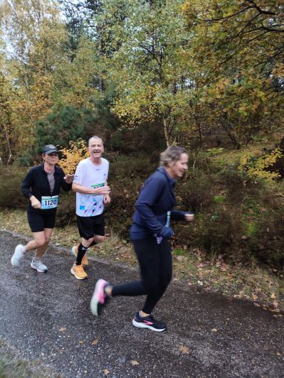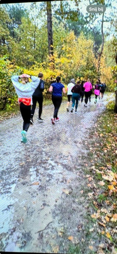 Oans Optisportlopers Ireen, Kees, Iris fan dy’t sich foar de 5 km inskreven hadden startten om 10.30 uur. Suzaanne en ik waren tien minúten later present foar de 10 km. Groate plassen, glibberege paden deur de herstbladers sòrgden foar un ekstra útdaging. Mar gelukkech was oans aller Fang anwesech foar de noadege ondersteuning. tHENKs Fang!!