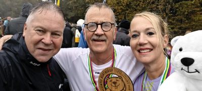 Tegare met Paul en winnares bij de dames, Ylona Kruis op’e foto. Hew gewoan ondanks de elementen en ut sware parkpoers tòch myn rapste Berenloop ever lopen in 1 uur en 10 minúten. Ik deed dat op’e kaart fan Els Luiks. Dank hierfoar.