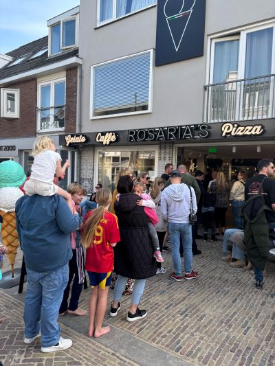 Ut foëlt na al dy sombere maanden tòch wel héél héél héél joppech an om su wear fan’e son te genieten. Disse omgeving, de dúnen én de terrassen ik hou der fan. Mar op 9 maart un groate rij foar un Italiaans ijsje bliëft tòch wel opfallend. Foar de rest privé.