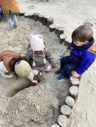 Ondertussen speult N. lekker in un moderne saanbak en graaft kúlen om 'U' teugen te sêgen. Der is altyd hoop sulang’t der kyndes binne!
