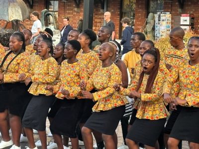 un sachte foarjaarswyn streelt de swart-goudgele banieren dachdroom ik muurskilderingen in un palet fan bonte kleuren huppelende kyndes met roaie ballonnen an un toutsje & su