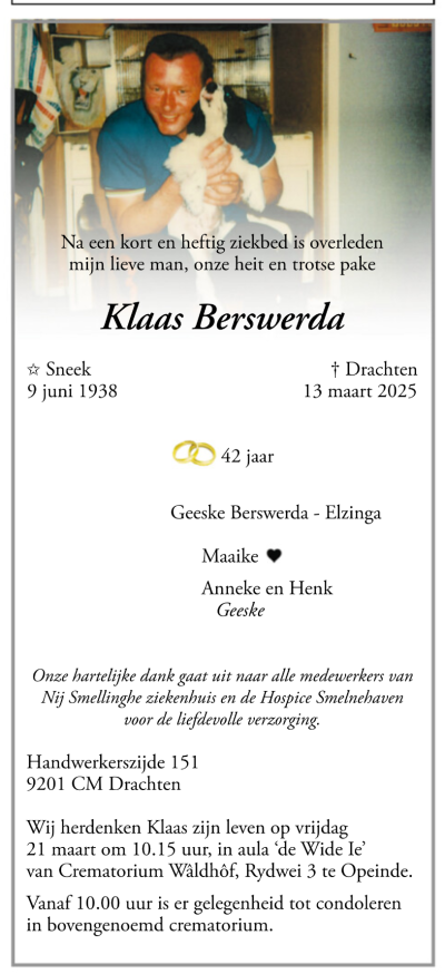 Hieltyd faker kom ik rou-advertênsy's teugen over wat ik dan mar noem as jeugdhelden. Klaas Berswerda, dy't bij oans in'e straat woande was der su'n eentsje.