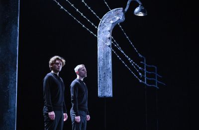 Het publiek wordt gevangen achter prikkeldraad en betonnen palen. Het is donker. Het maakt op mij meteen grote indruk, hier is ontsnappen niet meer mogelijk. Dit decor raakt. Als de twee acteurs plaats nemen vertellen de acteurs het verhaal van Lex van Weren, een Joodse man uit Amsterdam. Lex van Weren (Den Haag, 13 maart 1920- Amsterdam, 31 juli 1996), het is zijn levensverhaal. Of dat levensverhaal goed wordt weer gegeven, kan ik niet beoordelen, ik heb Van Weren niet gekend.