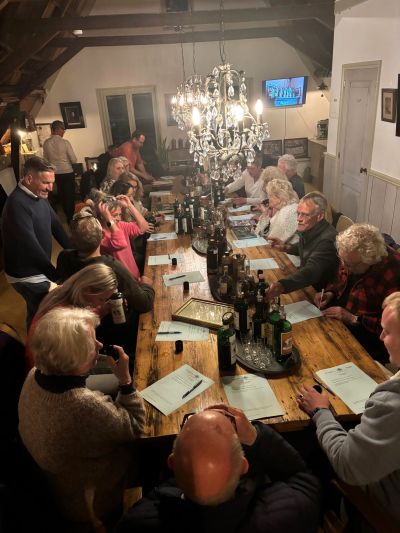 Su as gebrúkelek wurdde de earste kursusavend ouslúten bij de Weduwe Joustra op de sòlder fan’e Wedúwe Joustra dêr’t metwerkster Fardou op har kenmerkende entûsiaste wize over de geskiedenis fan ut breoemde Sneker bedriëf fertelde. Eén fan’e hoogtepunten fan’e avend was un eksklúsieve Beerenburg proeferij. De helt fan’e kursisten raade út 5 soarten Beerenburg de enege échter Beerenburg, dy fan’e Weduwe Joustra!