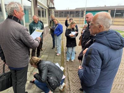 Dêrna met Sietse Wierda deur de Sneker binnenstad om naar ferhalen te lústeren over Sneek en de Tweede Weareldoarlòch en met name over ut freeslek lot fan ut Joads meiske Rozet IJzerman. Dat laatste ferhaal fertelde Sietse in’e Waterpoart, en ok onder disse groep nòch wear un antal kursisten foar wie ut de earste kear was dat se in ut pronkjúweel fan’e stad waren! Groëne Dyk