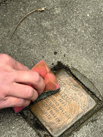 Sneek – Op donderdag 17 april vond de jaarlijkse Identiteitsmiddag van Firda plaats, dit keer met als thema “Ambacht in de Mienskip.” In het kader van deze middag gingen zo’n vijftien medewerkers van Firda met zorg en aandacht aan de slag om alle 25 struikelstenen (stroffelstiennen) in de binnenstad van Sneek schoon te maken. De actie vond plaats in samenwerking met Sneek 80 jaar Vrijheid en de Stichting Monument Synagoge Sneek.