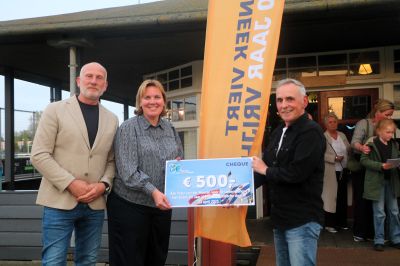 Vanavond was de laatste lezing in samenwerking met de ‘Stichting Sneek viert 80 jaar Vrijheid’. Na afloop van de voordracht overhandigde bestuurslid Bert Koopmans van de Stichting een cheque van €500 aan Peter van der Meeren. Hij gaf op zijn beurt de cheque over aan voorzitter Kim Kampan van LSC 1890, voor het restauratiefonds van het monumentale tribunegebouw.