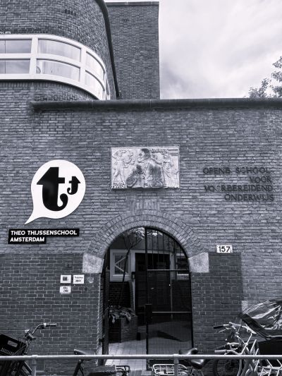 As onderwiesman was ik altyd al sjarmeard fan Theo Thijssen. Kwam fanmiddach deur de Anjelierstraat en sach dêr un fraaie gevelstien ter eare fan’e groate pedagooch/skoalmeester teugen. Hew ik un foto fan maakt en fanavend info over socht. Hierbij wat ik fond: