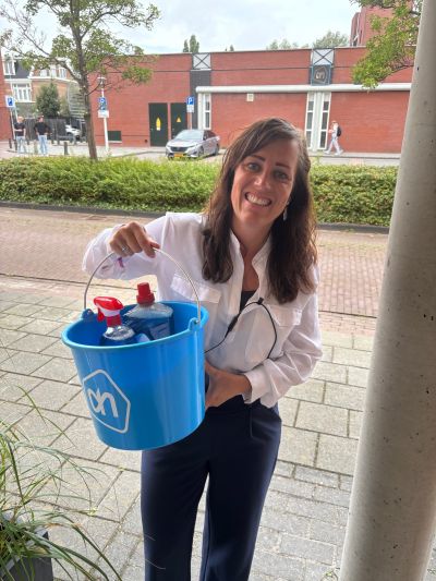 Ferder fanmòrren un emmer met skoanmaakmiddels fan buurtsúper Albert Heijn cadeau, de winkel gaat binnenkòrt 14 dagen dicht foar un grondege ferbouwing. Aardech dat AH su om syn buren denkt. Inderdaad beter un goeie buurt… Marijke Reeker, service manager bij de blauwe krúdenier, overhandegde de emmer persoanlek.