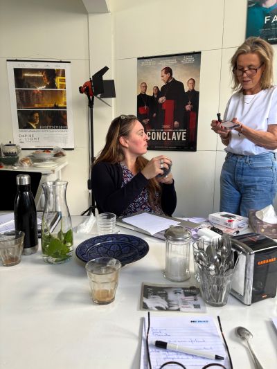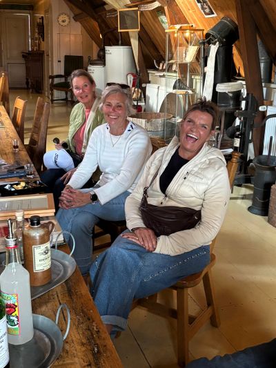 Banno (70), Jolet (50) en Mariska (48) en ik wurdden gastfrij ontfongen deur workshopleider Francoise Mittertreiner
