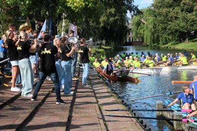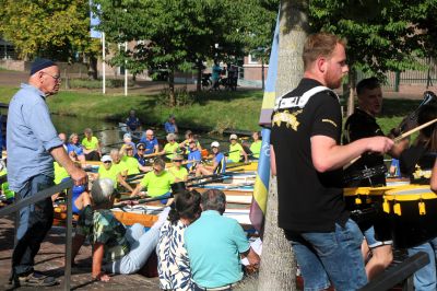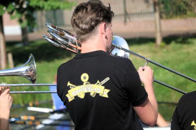 Langs de kant zorgde brasskapel De Boppeslag (‘since 2024’) voor een spetterend optreden. De jonge muzikanten, in hun zwarte shirts met opvallend geel logo, brachten met trombones, sousafoons en slagwerk een aanstekelijke sfeer. De muziek schalde vrolijk over het water en liet de boten nog meer schitteren in het zonlicht. Graag vaker optreden Boppeslag, dit smaakt naar meer!