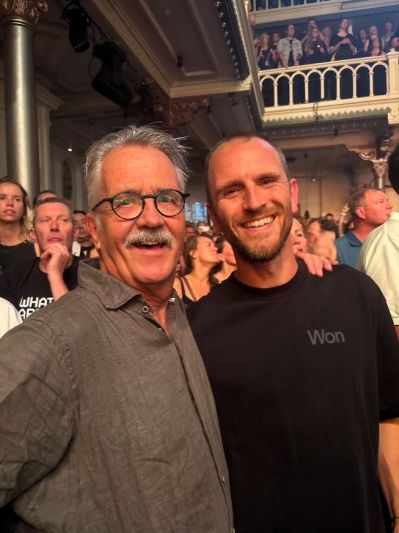 Ik skriëf hier nou gyn resênsy, mar simpel dat ik un fantastise avend had hew, sonder ‘gedoe’. Ut foëlde hearlek ontspannen an. Ik hew genoaten fan syn húmòr en relativearende opmerkings. Ut moaiste fan Jochem Myjer fyn ik dat bij hem de hilaritas altyd overwint onder de meast bizarre omstandechheden. Un échte overlever. Ik foël de konneksy nòch altyd. Fijn dat Jochem op syn eigen socials un foto deelt wêrop't te siën is dat oans gesameleke frynd, Ben van der Knaap, nyt fergeten wurdt!
