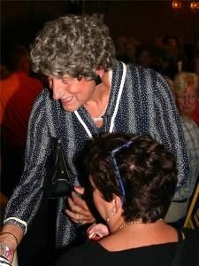 Apart is dat tòch, dry kear utselde doën, mar dry kear anders. Ik doël op de BSA. Gisteravend hadden we de derde foarstelling en ik durf te stellen dat dizze derde aflevering tòp was. Wêr suks an leit? Ut publyk was gisteravend geweldech, sonder de mênsen dy't de earste twee kear weest binne te kort te doën. 'Lachpublyk', noemde Matthie Silvius ut. Un term út de toneelweareld. Matthie ( 'Molly') speult al jaren en sal wel gelyk hewwe. Ik fon ut gewoan 'lekker'. Hew dêrom al wear nocht an sumetéén. Na ouloop faak diskussy over ut Snekers. Is ut nou 'mênsen' òf 'meensen'? Sêge je nou 'seumers' of 'somers'. Gaan 'jim' òf 'jum ' fanavend naar de jaardach fan Frou De Jong. Eén ding is seker, Arno Brok, fynt Sneek nòch hieltyd 'ien grut waarm bad'. Dizze knuffelburgemeester bedoëlt fanself 'un groate warme sinken tobbe '. Hij krijt nergens in dizze revu-achtege jaardach op syn soademiter. Dat Brok un soad búten de deur is, laat de meeste Snekers koud. Behalve wethouwer Andries E. Dy was um foarege week rotskrokken toen ie de earste burger fan Sneek op ut stadhús teugen kwam. 'Wat doëne jou hier Arno?' had ie fraagd. De burgemeester had de Roaie wethouwer ankeken en seid 'Oh, ik bin hier op werkbesoek..!' Snekers houwe wel fan humor, en Brok is un flugge learling blykber.