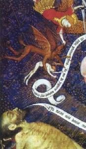" Bij het sterven verlaat de ziel het lichaam in de vorm van een mini-mensje. Een duivel en een engel voeren strijd om het bezit van de ziel. God heeft echter het laatste woord." Dizze tekst staat onder ut plaatsje dat ik fan ut net af haalde. Of ut waar is? Ik hew ut op un pypfòl!