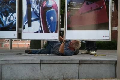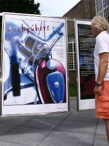 Su, ik gaan wear over tòt de orde fan de (sun-) dach. Paul was fanmòrren om halfnegen al op ut Oud Kerkhòf om te kiken hoe't de billbords der foar stonne. Ik twee uurkes later. Fantastise ervaring om te siën dat der allemaal mênsen foar de panelen staan om de foto's en de teksten te bekiken en te lezen. En úteraard fan kommentaar te foarsiën. De borden binne de earste nacht goëd deurkommen, gyn fernielings. Bin ik trouwens òk nyt bang foar, de skatejeugd is persoanlek op de hoogte brocht dat 'wij' hier dizze somer wear hange.