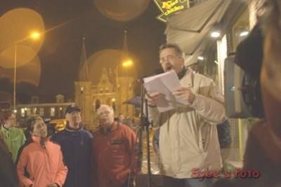 Alle dagen strún ik de weblogs fan myn Sneker kollega's ou. Harm Rozenberg is wear aktiver op syn weglog as er wel weest het. Gister skreef Harm un moai ferhaal over syn belevenissen as Swarte Pyt. Allienech om ut prachtege Sneker woard ' kiënse ' ( = dement in ut Hollaans en ' yn'e bernskes ' in ut Frys ) ut lezen al mear as weard! Su'n woard ' kiënse ', ut is puur taalgoud! Bedankt Rozenberg, de dach kan al nyt mear stukken. Sukrekt un flinke sundachmòrrenkuier maakt, je rúke overal de herst. Ok de post fan gister deurnommen. Sat un útnoadiging fan útgeverij Kleine Uil bij. Dizze útgeverij geeft op 1 desember anstaande ' Poëtisch Leeuwarden ' út. An mij de fraach òf ik myn fers út de bundel ok foarleze wil. Tuurlek, at dy Liwwarders om un ferbale speldeprik frage, salle se um hewwe ok! Na Amsterdam, Rotterdam, Groaningen, Utrecht en Academisch Goningen, is dit de sesde bundel in de súksesfolle seary literêre poëzykuiers. Gisteravend nòch in ut Abe Lenstra Stadion weest, nee gyn foetballerij mar andere bezechheden. Privé... Gek gesicht al dat keunstlicht boven ut gras. Levert wel un moai plaatsje op.