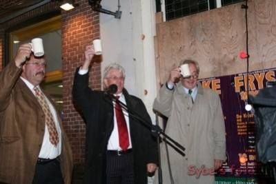 Wethouwer Tom Metz op ut feestje fan 8 november 2006: 'at ut un bitsje met sit kanne wij hier over un jaar de plannen realiseard hewwe...' ( foto's Sijbe Karspel )