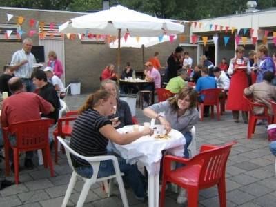 De foto’s fan ut draaiòrgelfeestje hew ik gister nyt kregen, eigenlek nyt su ferwonderlek, want de foto’s binne maakt deur un Liwwarder… Nou ja, ut was gewoan un bearegesellech feestje met òf sonder foto’s. Ok gesellech was Lekker Sneek gistermiddach. Onder ideale wearsomstannechheden besochten dúzenden minsen ut kulinêre spektakel om de Groate Kerk. Un deel fan de opbrengst gaat naar ut Hospice in Sneek. Hulde! De spesiale Oerol-act fan Wil Dijkstra dy’t un oade brocht an burgemeester Arno Brok was fan de bútenkategoary: tòppy!!! Der sit un groate kaans in dat Wil un útnoadiging krijt om in de Sneekweek op te treden. De Bogerman Bigband speulde fanmiddach de pannen fan ut dak. Ok foar Anne Oosterhaven dus un fear. Na ouloop was ut in de stad ( lees horekagelegenheden ) nòch smoardruk. Na dry kear is Lekker Sneek al nyt mear fut te denken, logys Sneek is Lekker! Fandaach gaan we naar Amsterdam, we salle de stad ferkenne op’e fyts. Uteraard wel met de auto naar Big City. Mòrren mear nijs fan un befoarecht mins!