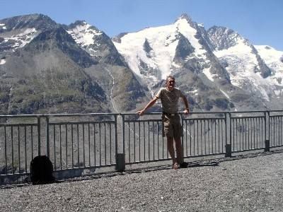 Gister is Harm Postma, oud-buurjonge fan mij en ok ONS'er, na un slopende sykte overleden. Dizze foto kreech ik fan Harm op 7 augustus 2007. Harm staat hier foar de Gross Glockner in Oasteryk. Fandaach skreef ik onderstaand fers. At ik naar búten sien jaagt un skrale wyn hagelstienen over ut parkearplak fan de Julianastraat. Un felle maartson skynt tussen de buien deur. Ut is un roëtkouwe wrede dach fandaach.
