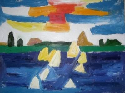 Fandaach un mailtsje út Liwwarden kregen dat mij wat onrustech maakt. Nee, nergens over in sitte, de animositeit tussen Snekers en Liwwarders sal bestaan bliëve. De ousender fan de mail kwam met un heel earbaar foarstel. Ik bin der dan ok op in gaan. Foar de kenners haal ik al fast un tipke fan de sluier omhooch en toan hieronder un doek fan dizze Liwwarder. Hij was kòrtleden in Sneek en kreech inspirasy ( dat wil dus sêge, dat hij gewoan an ut werk ging ! ). Dit was ut resultaat. Over wie ik ut hew? Later mear. Ik hou wel fan dizze keunst! Foppe ok...