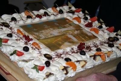 Un taart fan ut Sneker públyk foar de " Fanfare ", mar dat is fanself wat anders as 20.000 euro's! ( foto's út argyf Teater Snits, Rudina van Solkema )