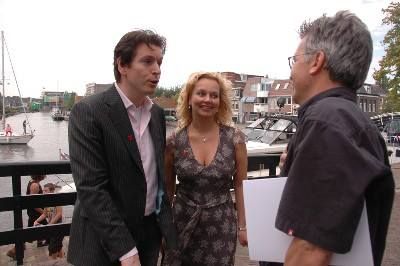 Terwyl ut somerjurkje fan Wendy fleurech in de nasomerwyn opwaaide en de boatsjes deur de Kolk foeren flisten de kamera’s. An públisiteit gyn gebrek. En toen was dêr inenen ( nou ja inenen, hij was op ut laaste moment optrommelt om syn kollega fan Kultuur Hans van den Broek te ferfangen ) wethouwer Tom Metz. Ut was kultureel Kertiermaker Ben van der Knaap ok al ter ore kommen dat Guido wat met skaatsen het. Foar Van der Knaap un inkòpperke. Ut nije Teater fan Sneek komt an de Elfstedenroute en wat is der dan ut meast foar de haan lêgend om su’n man as Guido Dieteren un paar orizjinele Friese houtsjes an te biëden. En dat gebeurde om eksakt twintech over twee op de Waterpoart. Wethouwer Metz was su entûsiast dat y in syn kòrte toespraakje teugen Guido o.a. sei “ …en met deze Friese doorlopers kunt U heel Friesland doorvaren!” Un moaie ferspreking, mar ik kon de fergissing fan Metz wel begriepe. Hij had ut útsicht op de Kolk met allemaal farende boatsjes, dat dan denke je nyt futdaleks an un barre Elfstedentòcht op skaatsen.