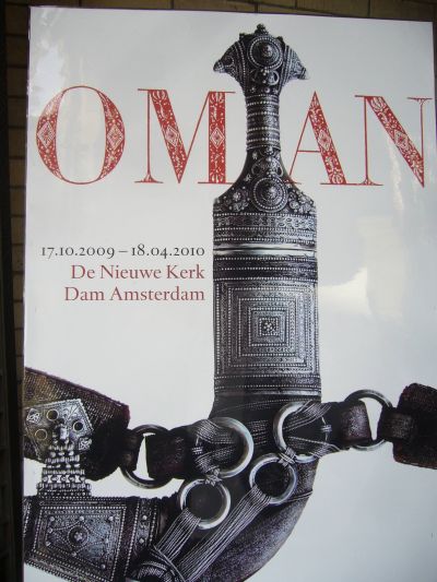 Nou het de Nieuwe Kerk in Amsterdam fan sichself al moai wat allure mar deur de tentoanstelling ' Oman ' dy't dêr op dit moment te bewonderen falt het ut ouwe gòdsgebou nòch mear glaans. Wat is dizze eksposisy over Oman fantastys inrichten. De groate baniers met foto's en teksten binne met sòrch útkoazen en geve de tòch al nyt misleke ekspo nòch wear wat ekstra's. Eén fan de moaiste tòpstukken op dizze bysondere tentoanstelling fyn ik ut skouderblad fan un kameel met hierop in haanskrift ut beginfers út de Koran. En nyt te fergeten al dat únike silverwerk, met name de Al Saídi kromme dolk. Waarlek un pronkstukje!! Mach dúdelek weze dat dizze tentoanstelling in de smaak fallen is!